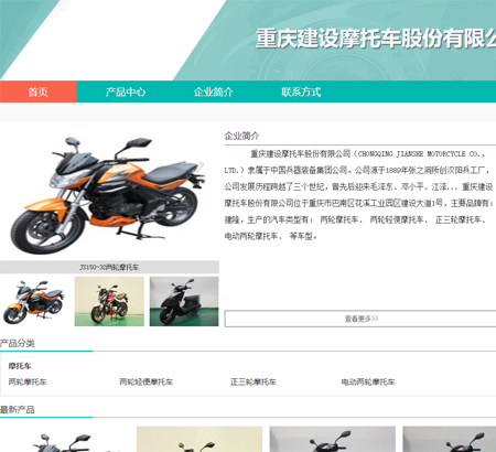 重慶建設摩托車股份有限公司(CHONGQING JIANSHE MOTORCYCLE CO.,LTD.)隸屬于中國兵器裝備集團公司。公司源于1889年張之洞所創漢陽兵工廠,發展歷程跨越了三個世紀, 成為在中國具有舉足輕重地位的大型軍工企業,曾先后迎來毛澤東、鄧小平、江澤民等黨和國家領導人的親臨視察。