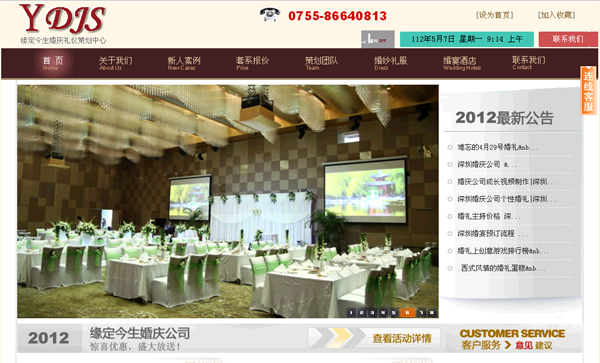深圳市緣定今生婚慶禮儀策劃有限公司是一家具有時(shí)尚色彩的專業(yè)婚禮統(tǒng)籌機(jī)構(gòu)。擁有雄厚的婚禮企劃能力、優(yōu)良的服務(wù)體系、資深的策劃專業(yè)人士和獨(dú)特創(chuàng)新的婚禮創(chuàng)意制作。形成了自己獨(dú)特的策劃風(fēng)格,具有承辦各類中、西式和個(gè)性化的流行時(shí)尚婚禮的豐富經(jīng)驗(yàn),可以向新人提供全方位、個(gè)性化的專業(yè)服務(wù)。及先進(jìn)的管理模式使我們?cè)谕袠I(yè)的競(jìng)爭(zhēng)中脫穎而出,獨(dú)樹一幟。