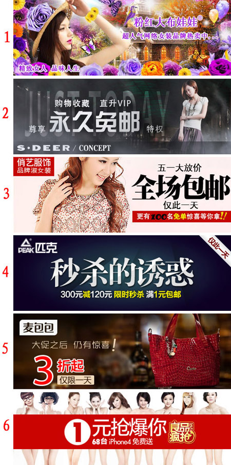 色彩炫麗濃重,偏可愛方向,突出品牌,店主的概念,無促銷字眼,無數字