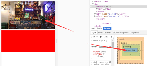 這時候在chrome谷歌瀏覽器中調試效果,發(fā)現(xiàn)圖片寬度變成了980px,然后各種算rem算不對,