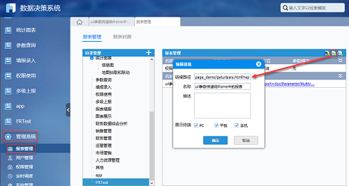 就可以在右側(cè)網(wǎng)頁的iframe中顯示出報表包括傳遞給網(wǎng)頁的參數(shù)。